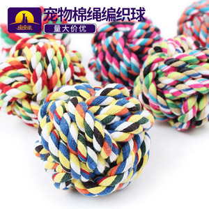 卸売りの皮は色とりどりの綿の縄を洗ってペットのおもちゃのボールの綿の縄を結んでボールの7cmの中でサイズの犬のおもちゃを編みます。