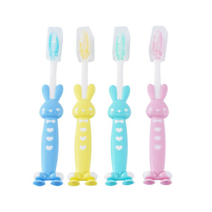 子供用柔らかい毛歯ブラシマカロンキャンディーカラー柔らかい毛4パック漫画クマとウサギかわいいベビー歯ブラシ