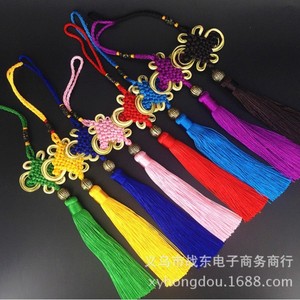 中国の結び目のペンダントの小さいサイズの金の縁の結び目の富貴な結び目は玉を着てフリンジの出国の小さい贈り物を持って金の縁を飾って玉を配合します。