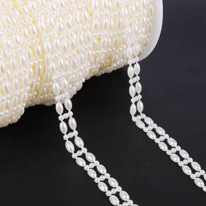 半円真珠二重線連線珠二重列連線珠ウェディングビーズチェーンabs半円珠チェーンdiyアクセサリー部品