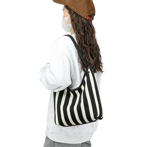 新しいスタイルの織りストライプ素材トートバッグ 大容量カジュアルレディースハンドバッグ 女性用バッグ ワンピース発送