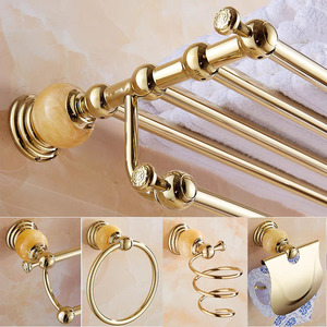 ヨーロッパ式の金色のタオル掛けのトイレの浴室の物置棚の穴開け式のタオル掛けのタオル掛けの棒セットの黄玉