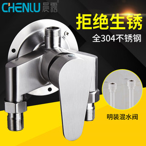 Chenlu 304 ステンレス鋼表面実装三角シャワーミキシングバルブ蛇口給湯器シャワースイッチ制御バルブ
