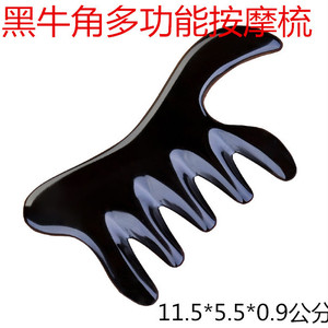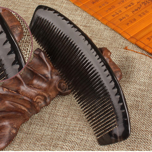 天然黒水牛角コーム、牛角コーム、8歯厚みのある頭皮マッサージコーム、経絡コーム、ヘアケア用スクレーピングボード