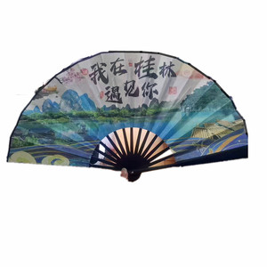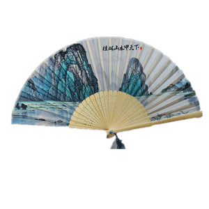メーカーは一尺の竹質絹布男性折り畳み扇桂林山水記念ギフト扇10インチ扇子を提供している