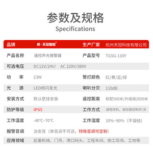 TGSG-110Y赤外線リモコン音光警報器無線遠隔制御小型工業音声警報器
