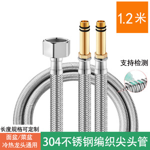 4分304ステンレス編組ホース金属上水単頭先先洗顔盆冷熱蛇口給水管