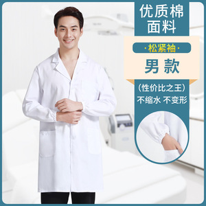 ロゴプリント付き白衣作業服、医師服、薬局看護師服、スリム美容室食品工場実験服