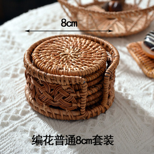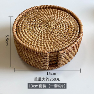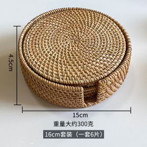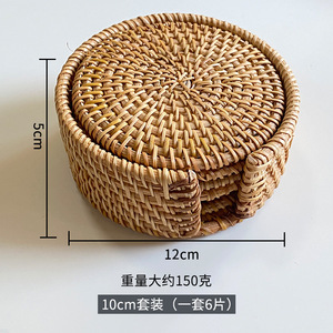 純粋な手作りの秋藤ベトナム藤編マットセットのパーマ防止カップマットの断熱マットの木製収納茶器の部品