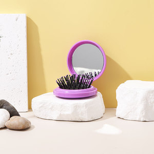 ポータブル円形ミラー付きポケット櫛折り畳みエアバッグマッサージプラスチック櫛