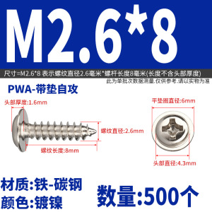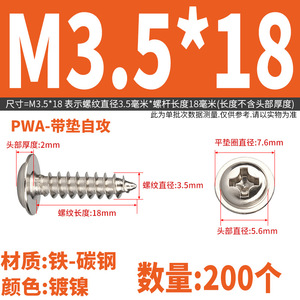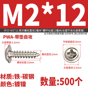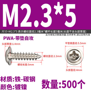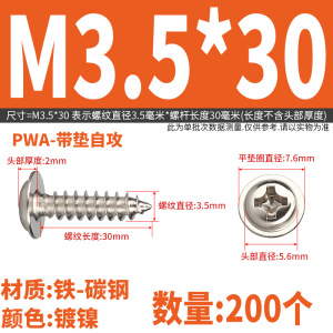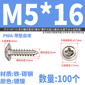 Pwaニッケルメッキ丸頭十字パッド付きタッピングスクリュー盤頭先先先先釘m 2m 2m 2m 2m 2m 3m 3m 5m 4m 5m 5