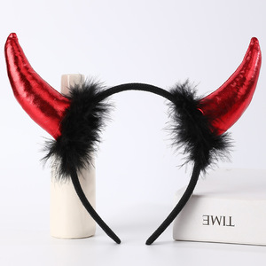ハロウィンクリスマスパーティーダンスパフォーマンスヘアアクセサリー白い羽の天使のリングヘッドバンド悪魔の角ヘッドバンド