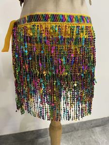 ハロウィーン現物ベリーダンス公演服装dsスパンコール流蘇ヒップタオルビーズ腰チェーンインドダンス腰タオル卸売り