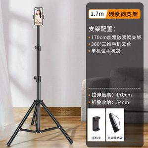 1.7m [厚手のカーボンスチールスタンド] シングルカメラ + 収納バッグ + セルフィー [クラフト紙箱入り]