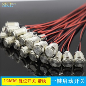 12MM金属ボタンスイッチ、リセット、フラットヘッド、コンピュータ、単一機、電源起動、低電圧、配線付き、工業グレード