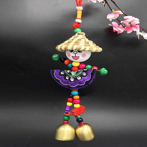 麦わら帽子人形風鈴東巴小人銅鈴かかしストラップ卸売り民族風麦わら帽子鈴アクセサリー