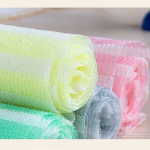 源工場の入浴用品の韓国式の長いバーの風呂タオルは背中をこすります。
