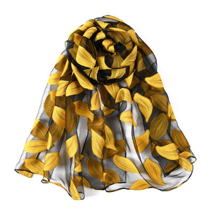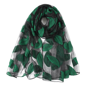 民族風春夏刺繍シミュレーションシルクストールレース木の葉刺繍マフラー大花欧根紗バラストール