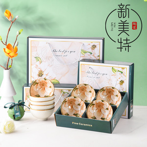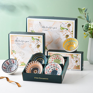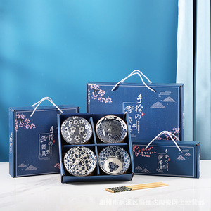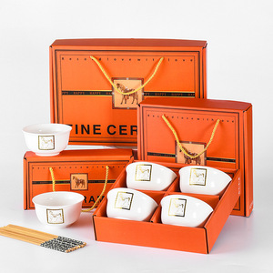 蛇年手描きボウルと箸セットギフトセラミックボウルと箸青と白の磁器ボウル食器セットクリエイティブボウル卸売メーカー