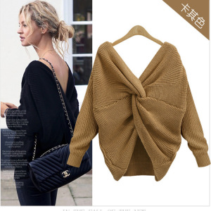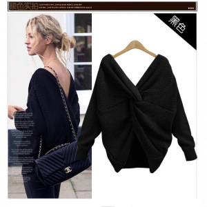 ヨーロッパ駅の2022秋の服の新型vネックの露背のニットの婦人服のゆったりした長袖のニットのセーターの百合の上着