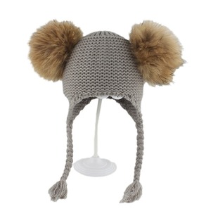 子供のタヌキのボールの帽子の双球の耳の麻の花のお下げのニットの保温の毛糸の帽子の男女の子供の赤ちゃん