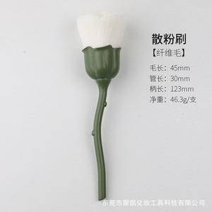 ローズフラワー - マットグリーンハンドル + マットホワイトヘア - 花型パウダーブラシ + OPP包装