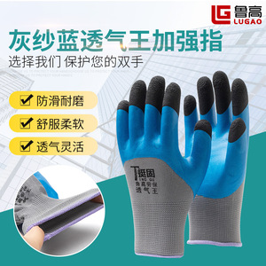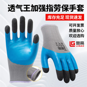 ゴム手袋の通気性王強化指耐摩耗性滑り止め労働保護手袋工事現場防護用労働者手袋卸売り
