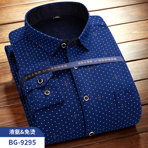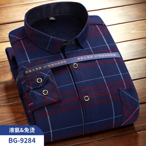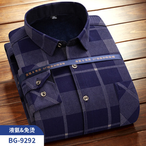 メンズプリントノーアイロンシャツ カジュアル裏起毛厚手シャツ 中年男性用冬用保温シャツ 工場直販