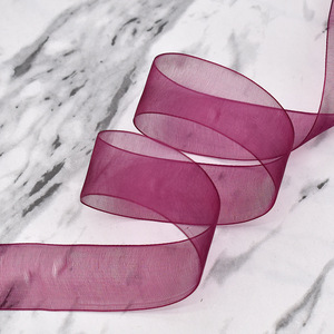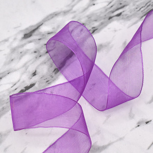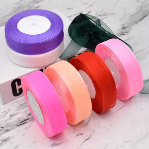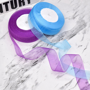 2.5cm多色雪紗シフォン付き透明リボンDIY補助材料包装リボンクロスボーダー起爆花リボン