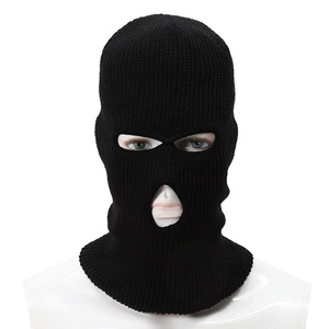ファッショナブルな黒サイクリングプルオーバー帽子 3 穴二重層帽子メンズ顔保護ウールニット帽子卸売