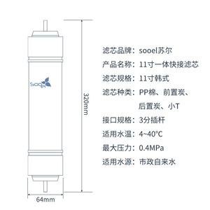 商用3分口純水機スール11インチ韓国式クイックロッド大T33炭pp綿前置炭小T33フィルタ