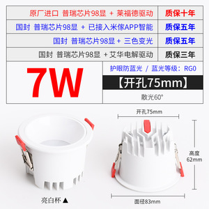 【幅狭金】7w亮白75開孔