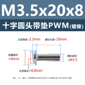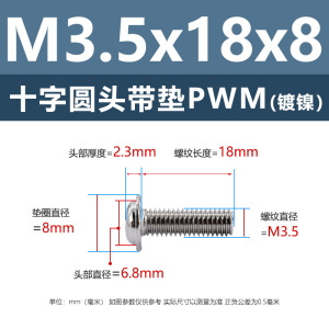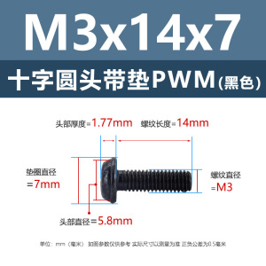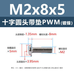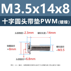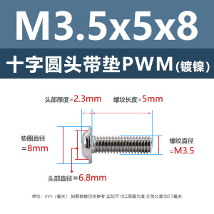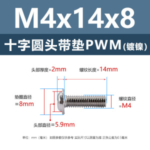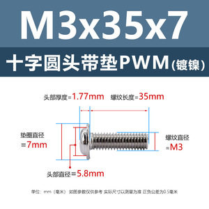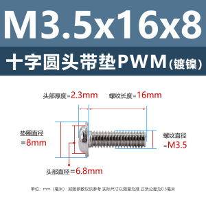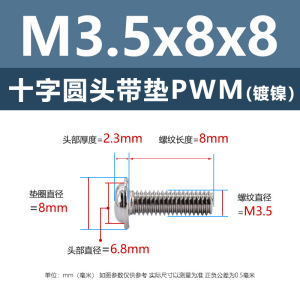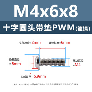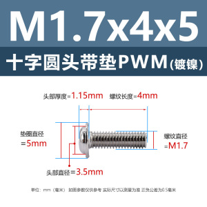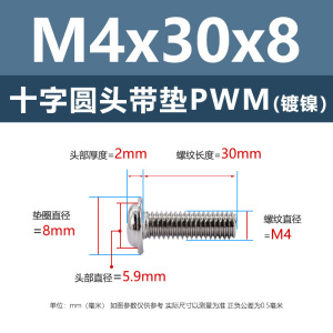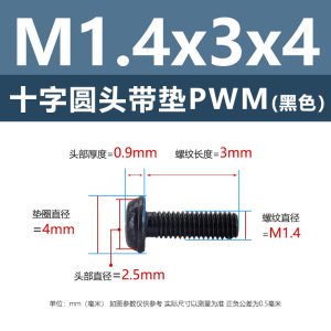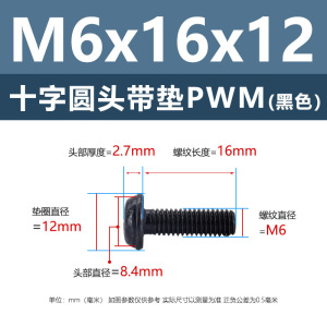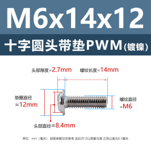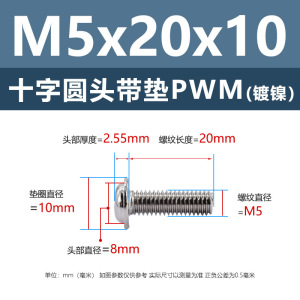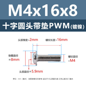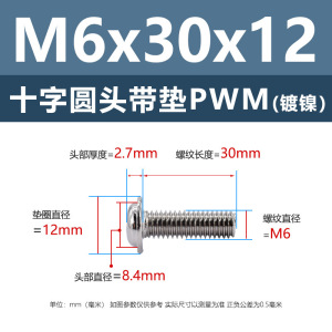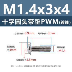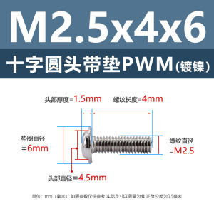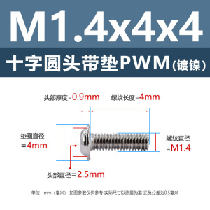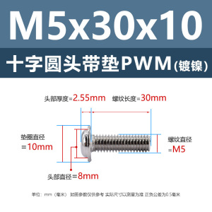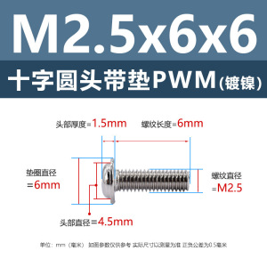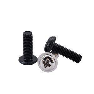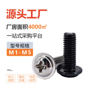 メーカー卸売りニッケルメッキPWM十字丸頭パッド付き糸M1.4-M6鉄黒色電子中間子付きねじ