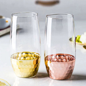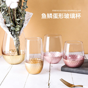 創意魚鱗卵形ガラスコップジュースカップ高顔値大腹ムースミルクカップメッキ朝食カップ卸売り