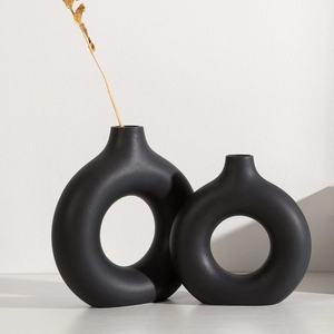 クリエイティブドーナツins風黒セラミック花瓶置物リビング生け花食卓ソフト装飾品花器卸売り