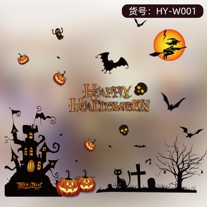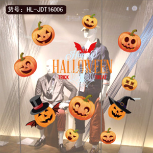 ハロウィーン装飾品魔女カボチャシールスーパーショーウインドー静電シールシーン配置道具窓貼りガラス貼り