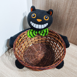 新しいハロウィーン装飾パーティー用品ホームオフィスデスクトップ収納バスケットハロウィーン竹バスケットキャンディーバスケット卸売り
