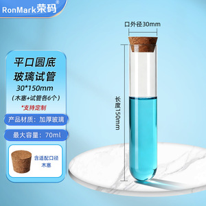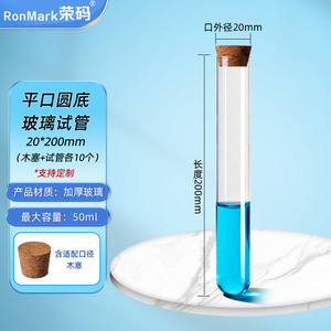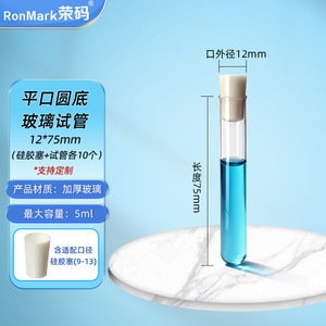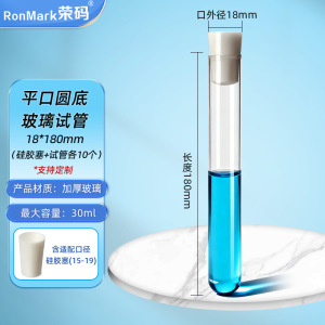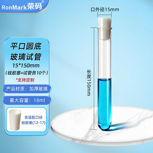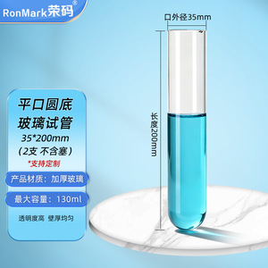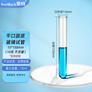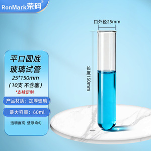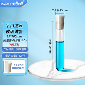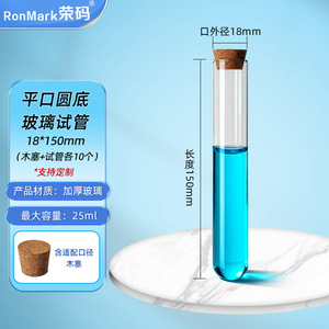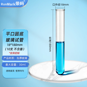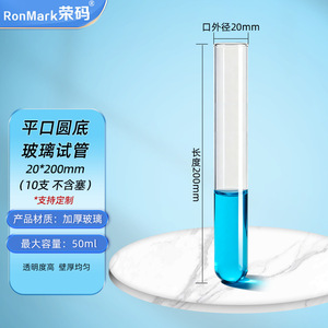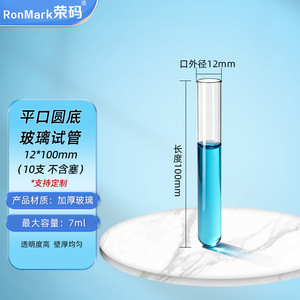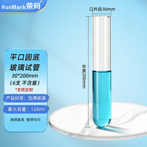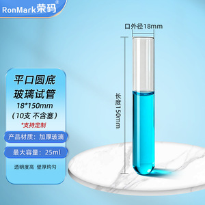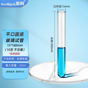 ガラス試験管平口丸底耐高温直径12/13/15/18/20/25/30mm実験用