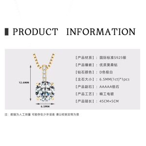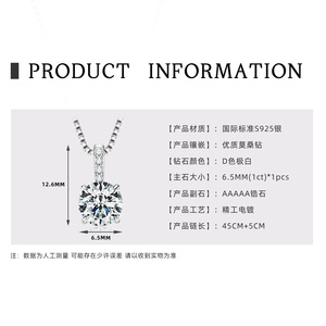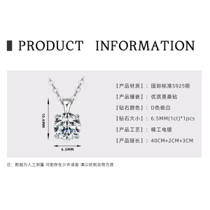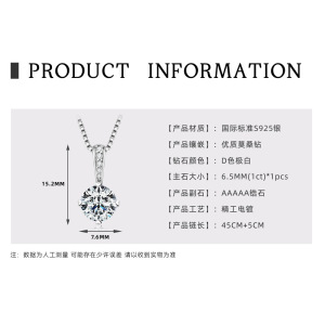 【1688厳選】外国貿易クラシック6本爪Dカラーモアッサナイト1カラットネックレス925シルバーペンダントクロスボーダー卸売