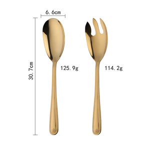 ステンレス製サラダスプーンとフォーク、長柄、大型、ホテル、レストラン用、共用スプーン、共用フォーク、料理、フルーツサラダフォーク
