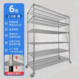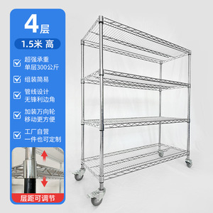 倉庫クロームメッキステンレス鋼棚ホイールラインメッシュモバイル収納ラック家庭用収納モバイル棚ディスプレイ棚