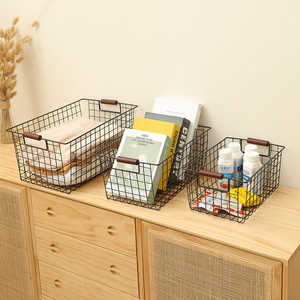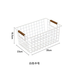 北欧の日本式のシンプルな鉄の芸の収納かごの台所の雑物の間食の収納かごのデスクトップの整理物のバスケットは取っ手を持ちます。
