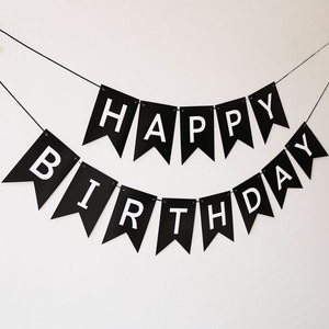小さなブラックゴールドプリントのバースデーフィッシュテールフラッグ
