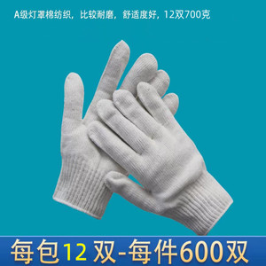 糸手袋綿糸手袋の仕事はナイロン白色糸手袋工場の耐摩耗性労働卸売り労働保護手袋を厚くする