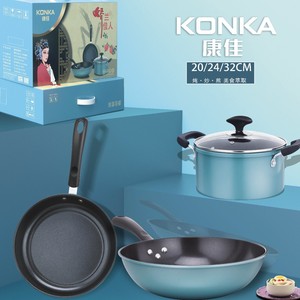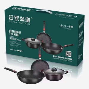 麦飯石鍋3点セット(中華鍋、スープ鍋、フライパン)精鉄製、油煙なし、焦げ付き防止、ギフトセット、家庭用