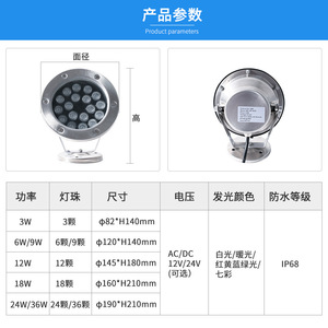 クロスボーダーLED水中スポットライト、プール水中ライト、魚池景観噴水ライト、カラフルなスポットライト照明器具
