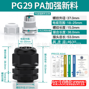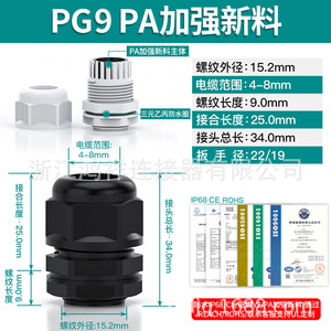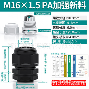 メートル型M型シールグランヘッドPA66ナイロンIP68防水ケーブル継手外ねじプラスチッククランプ固定