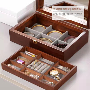X720011 ダブルレイヤー ロック付きミラー ウォールナット色 (29.5*19*9CM)