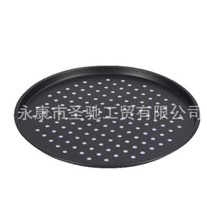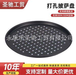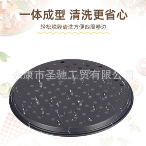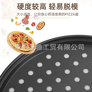 クロスボーダーハードマーブル穴あきピザパン、家庭用DIY丸型ピザ型、厚みのあるノンスティックで型抜きが簡単な炭素鋼製ベーキングパン