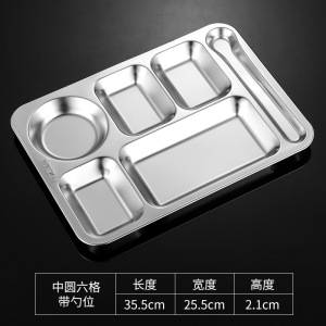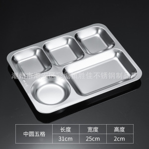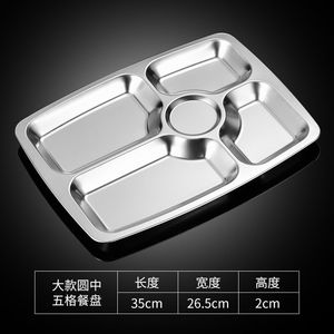 学生食堂レストラン弁当箱ステンレス鋼 6 コンパートメントファーストフードプレートコンパートメントライスプレート 304 ステンレス鋼ディナープレート